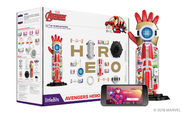 「AVENGERS HERO INVENTOR KIT」では「littleBits」を使用することで、『アベンジャーズ』ヒーローとしてのアイデンティティとハイテク・ギアの創造、カスタマイズ、プログラミングが可能。電子回路を楽しく学びながら、自らスーパーヒーローになれる。