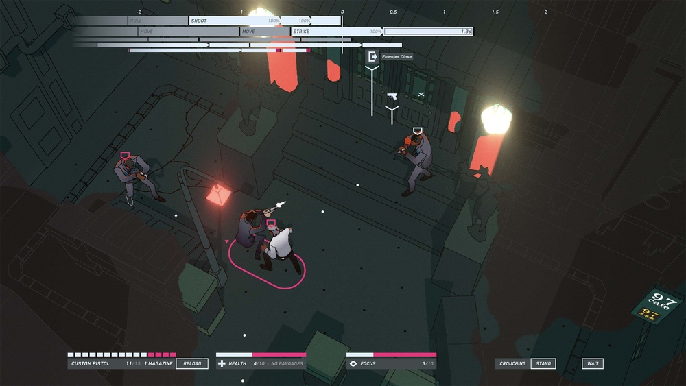 据介绍,《John Wick Hex》并没有模仿电影把游戏做成一个纯枪战的火爆游戏,而是将电影中的各种专业战术射击动作提炼出来,并融合到了战术游戏这一分类中。游戏里我们需要在与众多敌人接触的短暂时间内,规划好每一步行动并随机应变不同的战斗状况。与各种爽类射击游戏不同,《John Wick Hex》中的弹药十分有限,怎么杀敌,如何规避危险都成了重点与难点。
