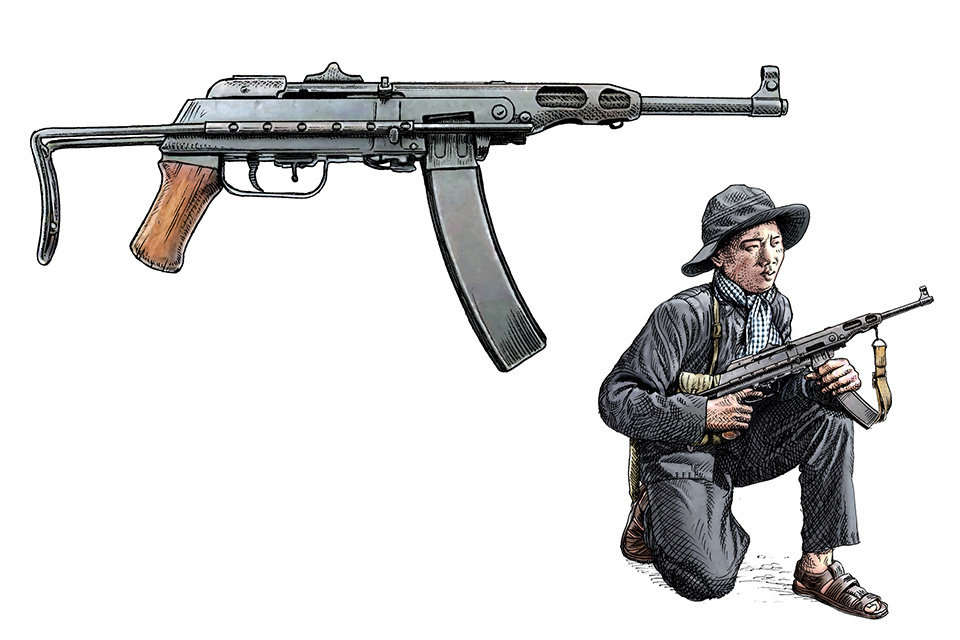 新枪 K-50M 冲锋枪是越南仿制的中国50式冲锋枪,这款独特的武器很难与其他枪型混淆,但就原理而言,它还是与苏联的 PPSH 十分相似。
