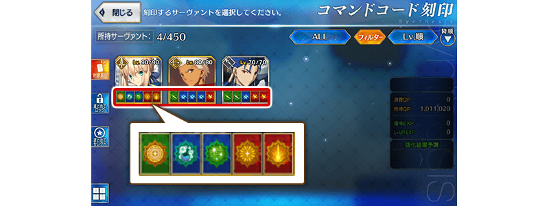 在刻印Command Cde的时候,可以确认英灵目前已刻印的Command Code的状态。