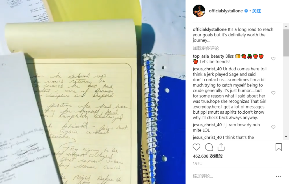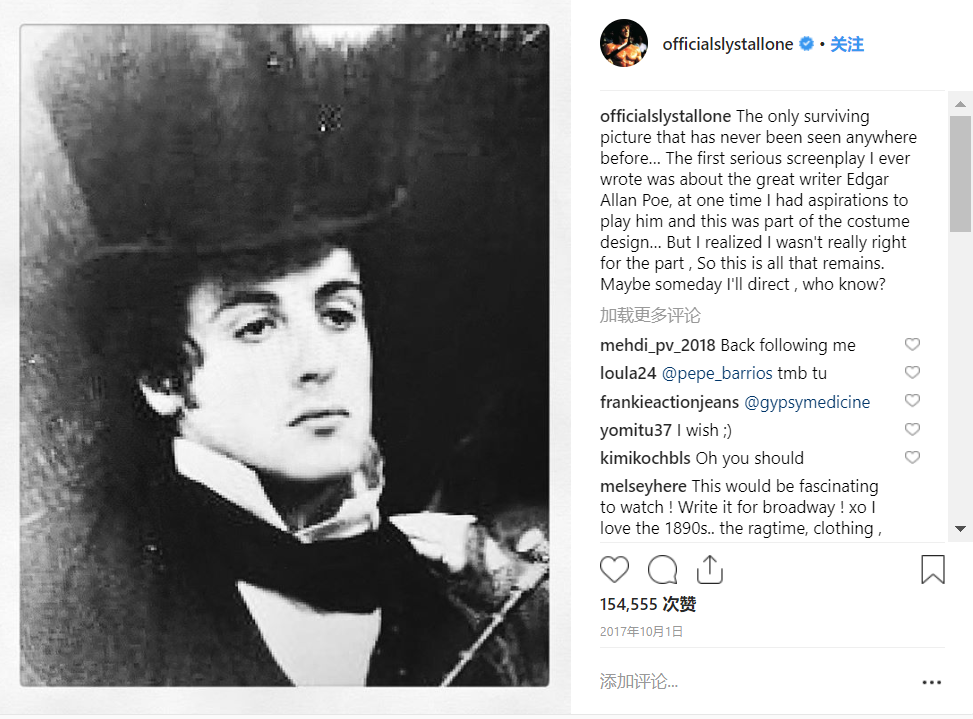 两天前(1月19日),正值爱伦·坡诞辰210周年,西尔维斯特·史泰龙在自己的 instagram 上晒出了一份未完成的剧本以及数十页笔记: