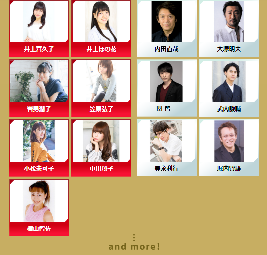 白组:内田直哉、大塚明夫、関智一、武内駿輔、豊永利行、堀内賢雄
