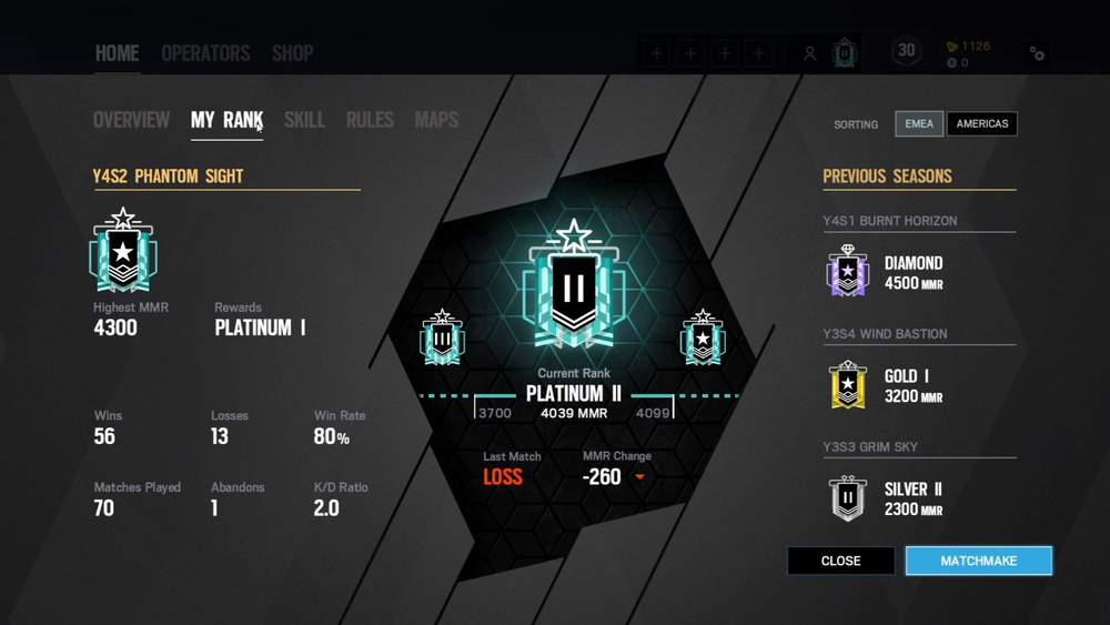 左边是当前赛季的MMR段位,胜率KD等信息,右边是你在各个区各个赛季的段位