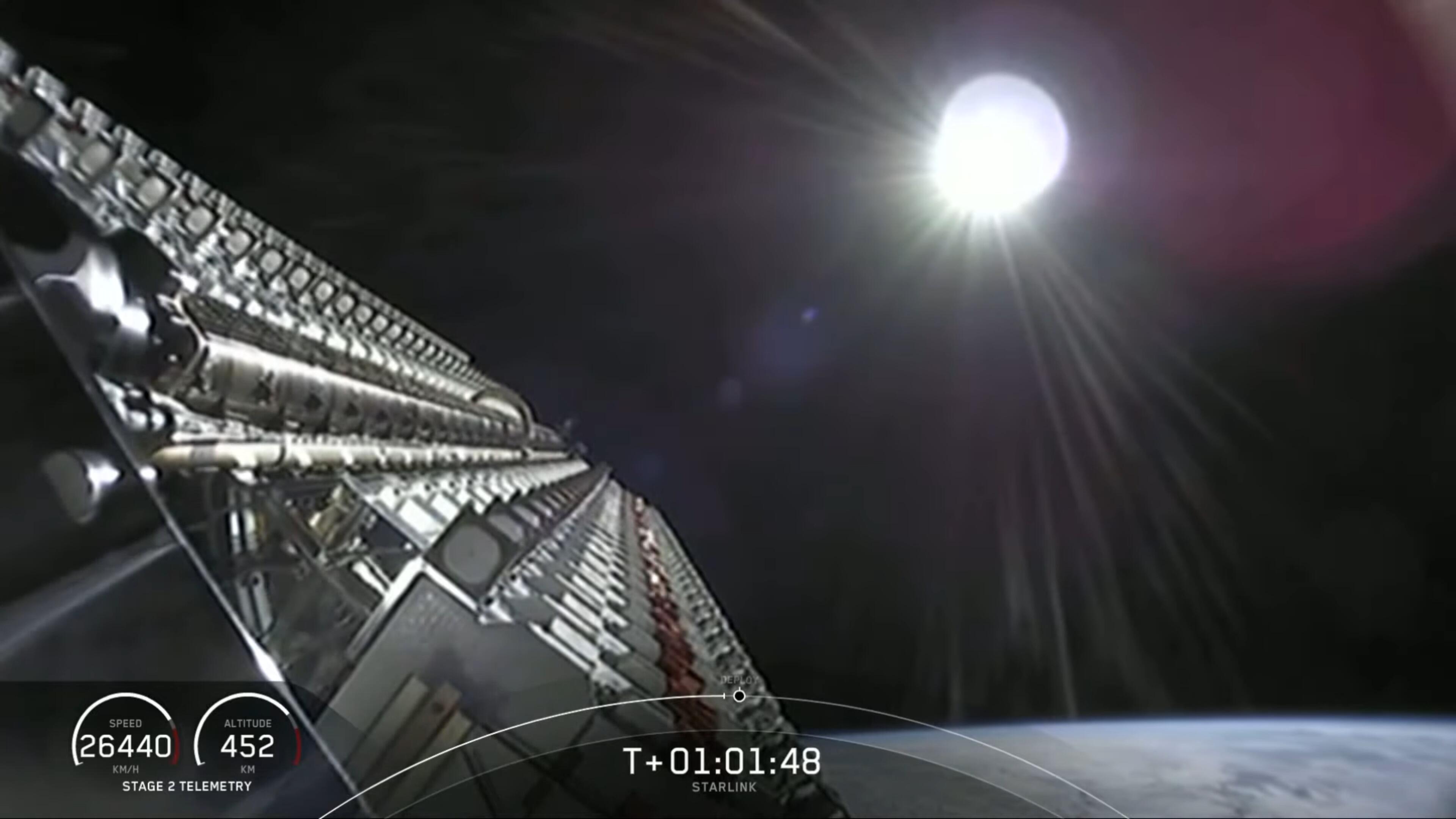 北京时间2019年5月24日,航天科技公司SpaceX在美国佛罗里达州的卡纳维拉尔角发射场,发射了一枚猎鹰9运载火箭,该火箭搭载了60颗第一批Starlink全球网络计划的通信卫星,在经过了一个小时的飞行与入轨后,60颗卫星离开运载舱,将逐步进入预定轨道。这些227kg的微型卫星将运行在离地面550km的轨道上,第一批设计的卫星在使用寿命到期后会自行坠入大气层,在经过大气层后会以极小颗粒的形式回到地球,后续发射的卫星批次在回归地表时不会有任何物质残留。