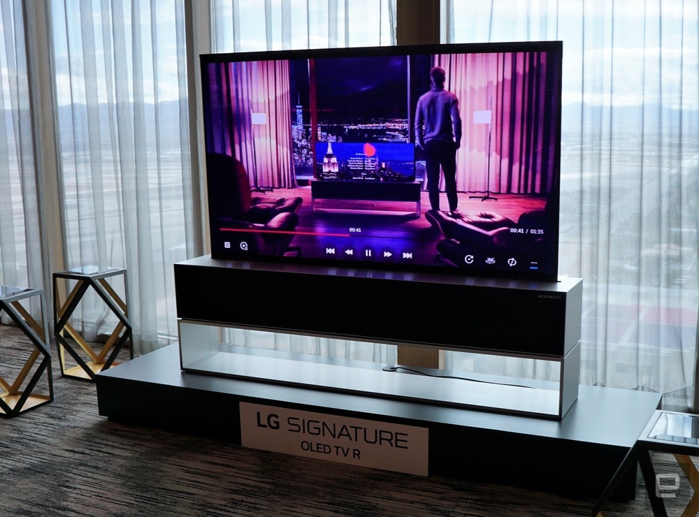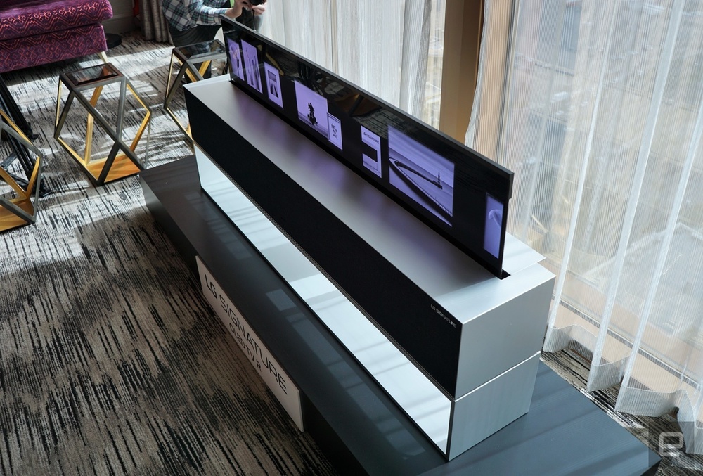 说起来,今年也不是 LG 第一次展示他们的可卷式 OLED 屏,去年的 CES 大会上也有这台 LG Signatures Series OLED TV 亮相。不过好消息是,如果顺利的话,今年晚些时候这台电视就可以正式上市,售价的话目前还没有相关情报,但是也可以料想的到会有多么夸张。