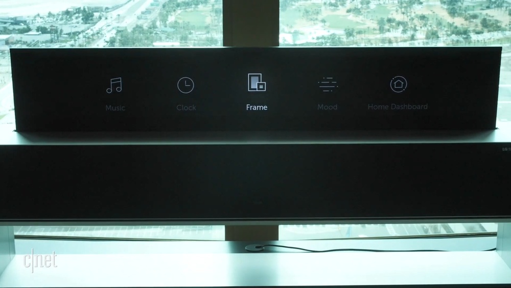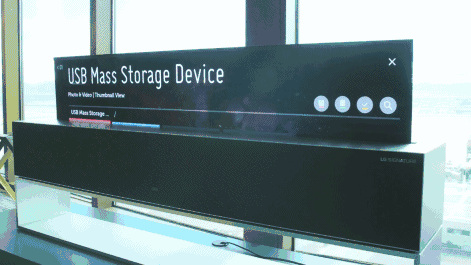 除了常规的电视功能之外,LG 还未电视提供了一种“简易显示模式”,屏幕卷曲至原先的四分之一大小,并且只显示一些像是时钟、相册、音乐等等简单的功能。如果你想的话,也可以在享受音乐的时候把屏幕完全收起来。