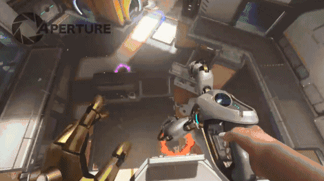 Andy 与 Lymbow 利用《守望先锋》的地图工坊模式实现了 Valve 经典游戏《传送门》的玩法。他们使用的人物是秩序之光,进入游戏后可以在任意两个物体的表面开通一道传送门,达成瞬间移动。