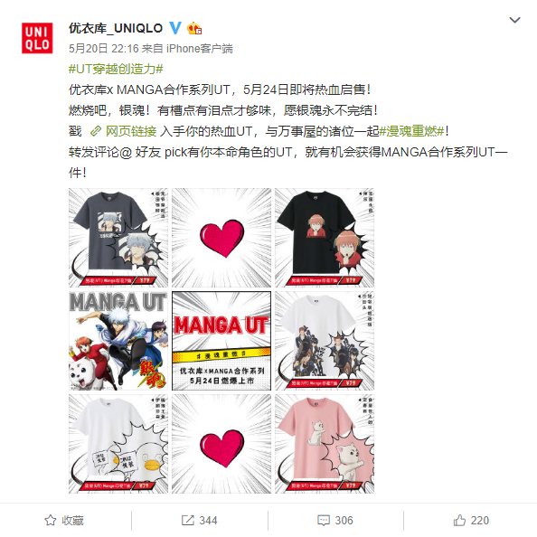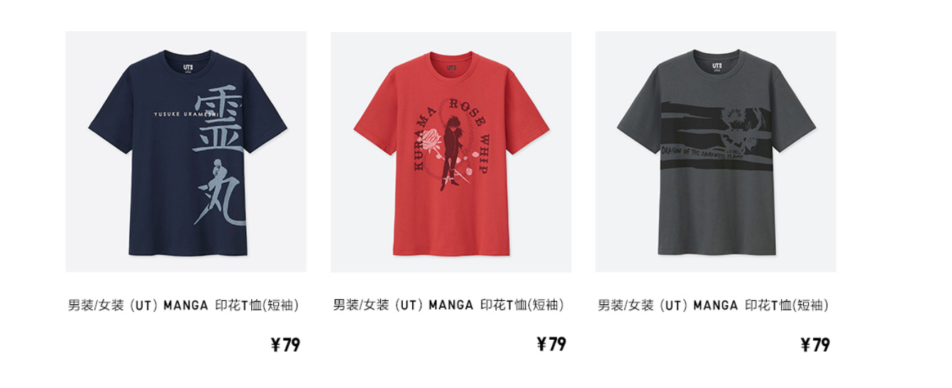 优衣库官方微博宣布,优衣库×MANGA 合作系列 UT 将在5月24日发售,这次图案包括《幽游白书》、《全职猎人》、《火影忍者》、《BLEACH境·界》、《银魂》、《黑子的篮球》、《排球少年!!》、《我的英雄学院》、《博人传:火影忍者新时代》、《新网球王子》、《福星小子》、《乱码1/2》、《犬夜叉》、《名侦探柯南》等一系列经典作品,5月24日(周五)零点正式开售,男女款式均卖79元,儿童款卖59元,一起来看看图案吧。