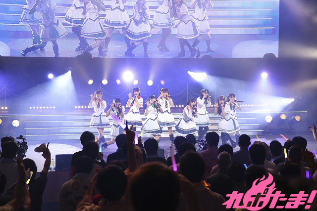 まずはSPRiNGSが白を基調とした涼しげな衣装を身にまとい「未来イマジネーション!」を歌唱。この日が初のステージとなる佐伯さんが挨拶を行い、ファン、そしてメンバーから大きな拍手を受けていた。