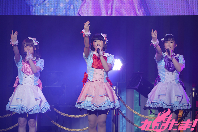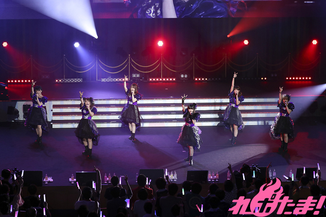 そして「Adhara」から黒川姫楽(CV:田中美海)、湯の川聖羅(CV:野口瑠璃子)、月岡来瑠碧(CV:西田望見)、乳頭和(CV:三上枝織)、白骨朋依(CV:新田ひより)、こんぴら桃萌(CV:吉田有里)が出演し、それぞれのユニットの性格が存分に表現されたパフォーマンスでファンを楽しませた。