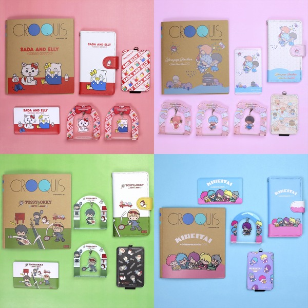 このたび発表されたコラボグッズは、「手帳型スマートフォンケース(4種)」「パスケース(4種)」「モバイルバッテリー(4種)」「クロッキー帳(4種)」「ゆらゆらアクリルスタンドコレクション(全8種)」というラインナップ。