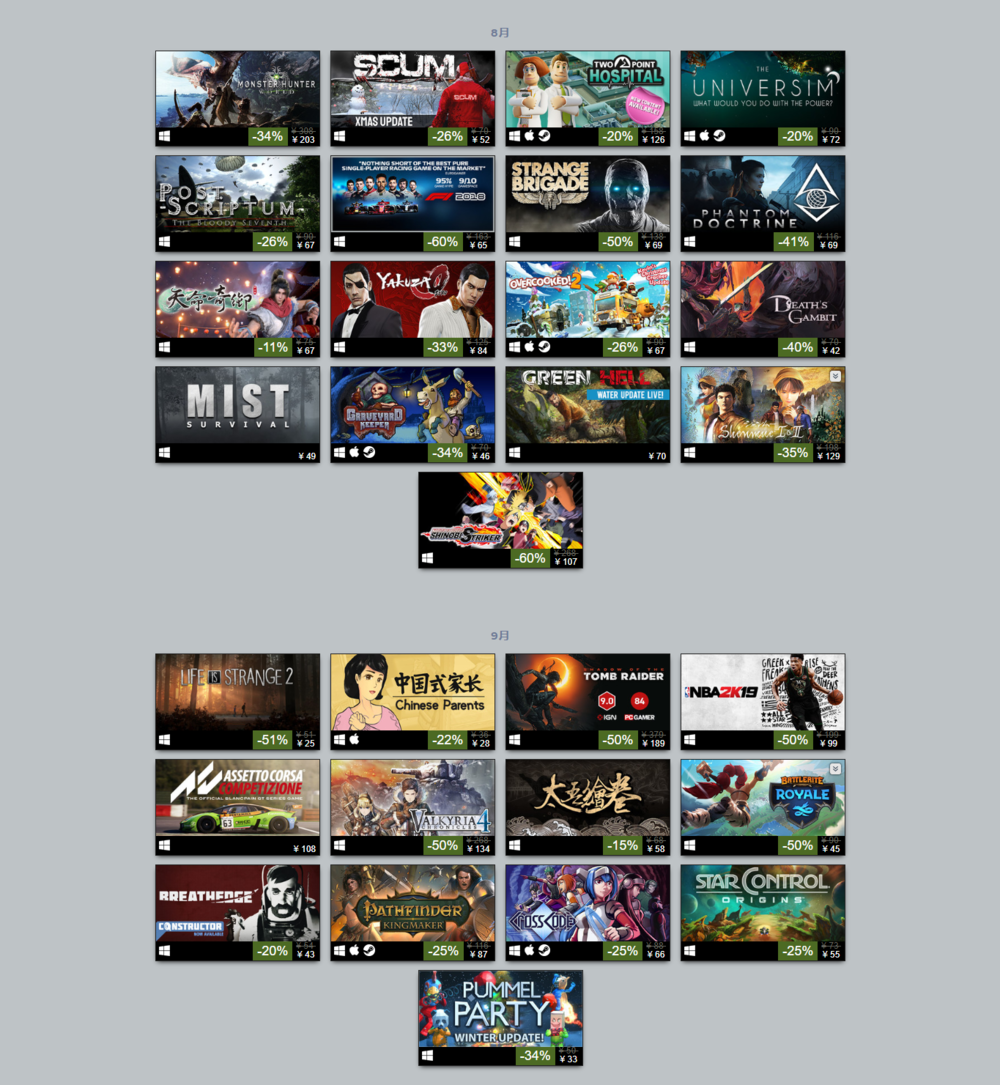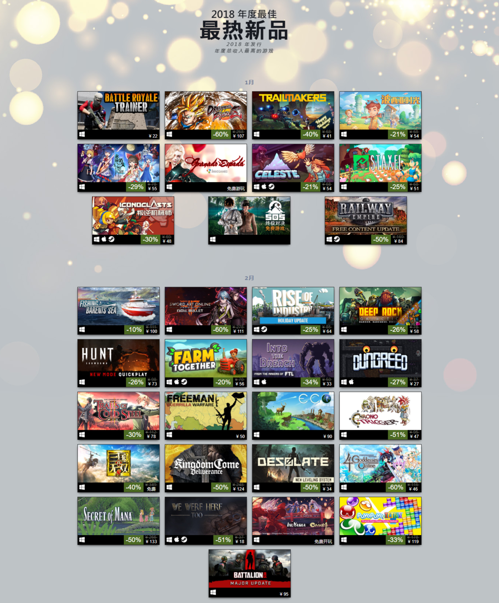 12月28日,steam发布了“年度最佳"游戏榜单,回顾年度畅销排行榜、人气最高游戏及最热新品,下文是详细榜单,你还可以在官网查看这些内容。截图较长,因此采取防剧透方式,请自行点开查阅榜单内容。