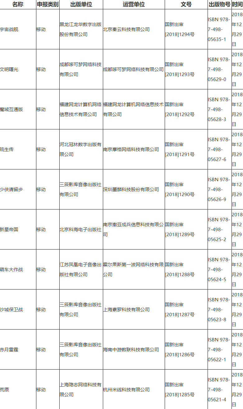 详细过审名单地址如下:2018年12月份国产网络游戏审批信息