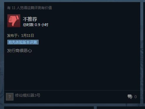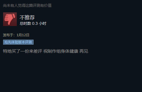 时间来到1月11日,游戏发售,各直播平台有多位主播播了我们的游戏,观众们的评价好坏都有,我们很感谢玩家们提出的一些建议。但另一边,steam评论区则出现了大量无实质内容的差评: