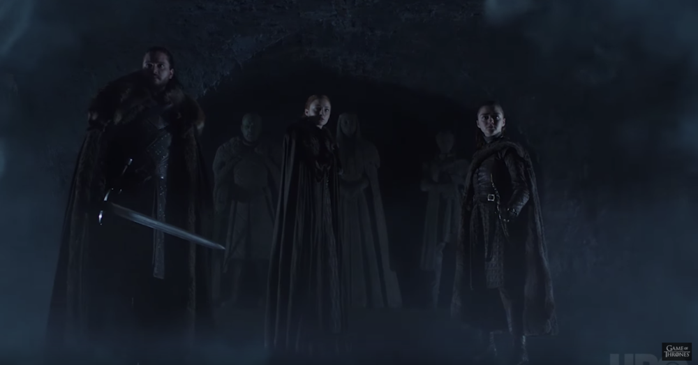 在这支预告中,三位主角齐聚家族坟墓,发现三座等身雕像,刹那间火炬熄灭,寒冰渗入地面并开始结冻,预兆着“寒冬已至”,最终的决战即将到来。