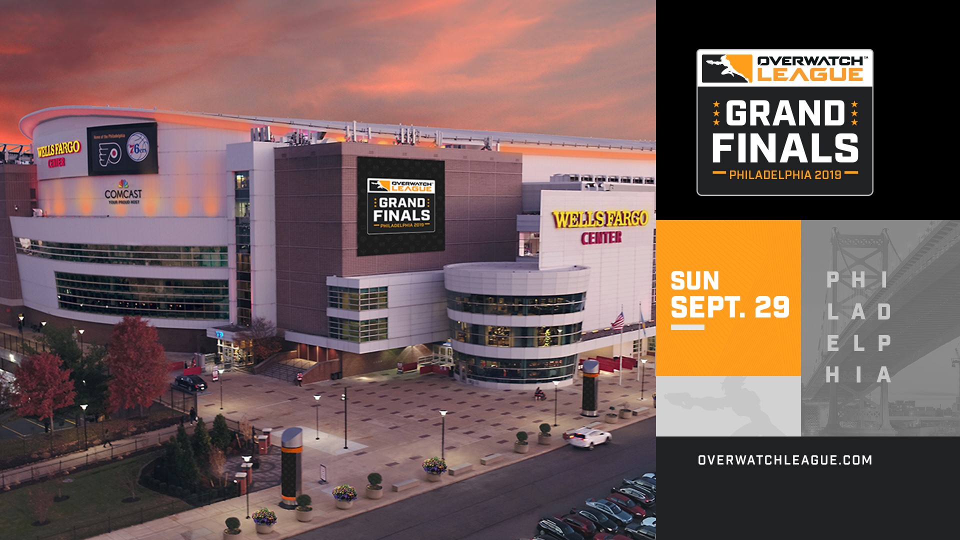富国银行中心是世界上最繁忙的体育场馆之一,是NHL费城飞人队,NBA费城76人队、NLL费城之翼队和AFL费城灵魂队的主场,每年有超过260万粉丝来到这座场馆。体育馆目前正处于“转型2020”计划的进程中,这是一项耗资2.5亿美元并为期数年翻新计划,目的是为场馆内的观众带来焕然一新的体验升级。场馆升级计划包括对主厅的全面改造和全新的低区座位排布,并将安装世界首个动态4K中央屏幕娱乐系统。《守望先锋联赛》总决赛将成为该场馆在夏季大幅升级改造之后举办的首个重大赛事。
