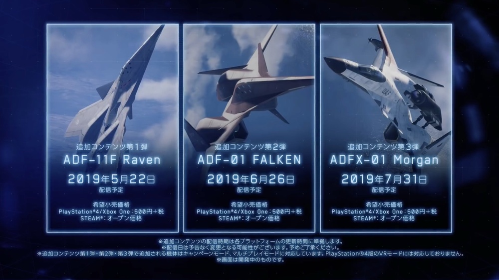 《皇牌空战7 未知天际》中的原创机体并不多,其中 X-02S 可以在游戏中解锁操纵。但最终 BOSS,可分离 UAV“ADF-11F Reven”却无法获得。不过万代南宫梦近日发布了季票内容宣传片,其中包含 ADF-11F RAVEN、ADF-01 FALKEN、ADFX-01 MORGAN 三架原创战机,和对应的新武装。