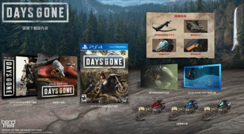 SIEH今日宣布,PS4 独占游戏《DAYS GONE》将在2019年4月26日发售,普通实体版本售价468港币,珍藏版售价1088港币,下载普通版同样为468港币,豪华版下载版为538港币。