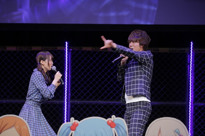 続くライブコーナーでは穴沢虹海と奴村露乃のカップリングを含むキャラクターソング4曲に続き、本作のEDテーマがソロデビューとなった山崎さんが「ゼンゼントモダチ」を歌唱。途中挟まれたMCによるインフォメーションコーナーではイベントBlu-rayの発売がアナウンスされると、会場からは拍手が巻き起こりました。