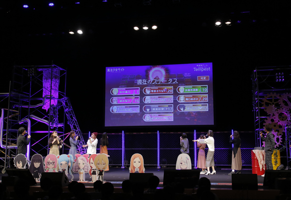 まずイベント前半は「新感覚ゲーム Road To Tempest」と題したゲームコーナー。こちらはイベントの出演者全員が順番にルーレットを回して、ゴールとなる「テンペスト」を目指すという、すごろくに似たゲームです。止まったコマには色々なミッションがあり、そのコマに記載されたミッションに挑戦、その結果20ポイントのライフポイントが上下します。