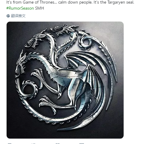 事实上,从这个视频中并没有正面的表达是《权力的游戏》相关的主题,但是图中展示的徽章,事实上是《权力的游戏》中塔格利安家族的纹章,在评论区中的粉丝也放出了文章的全图: