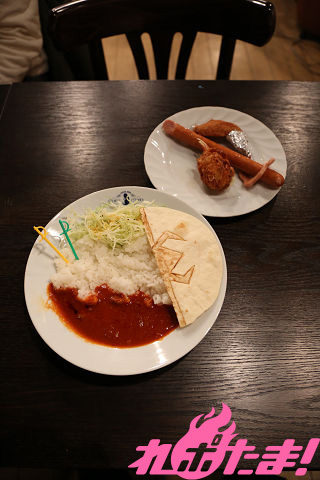 赤色のマサラカレーでアインズギルドの旗を、トルティーヤはアインズのマントをイメージした辛口カレー。
