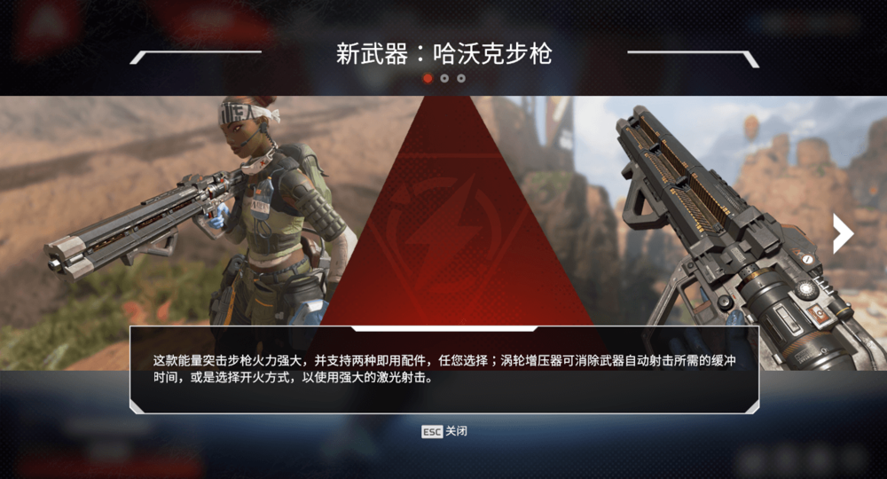 哈沃克步枪是一把使用能量弹药的突击步枪,火力很高,同时支持两种枪械配件:涡轮增压器和开火方式选择器。