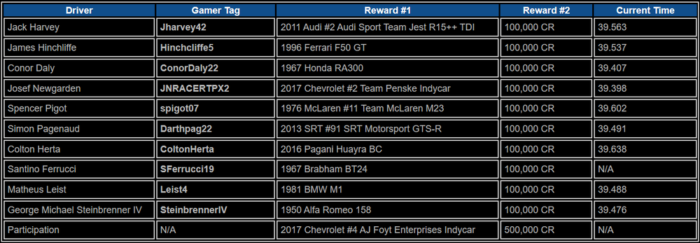 令人沮丧的是,192圈的努力还是不够。领头羊再次是 IndyCar 车手 Newgarden—39.398,撰写本文时他的圈速位列24。JSR AziDhk 目前占据榜首,令人难以置信的圈速39.332。以下是 IndyCar 车手们第二周的圈速: