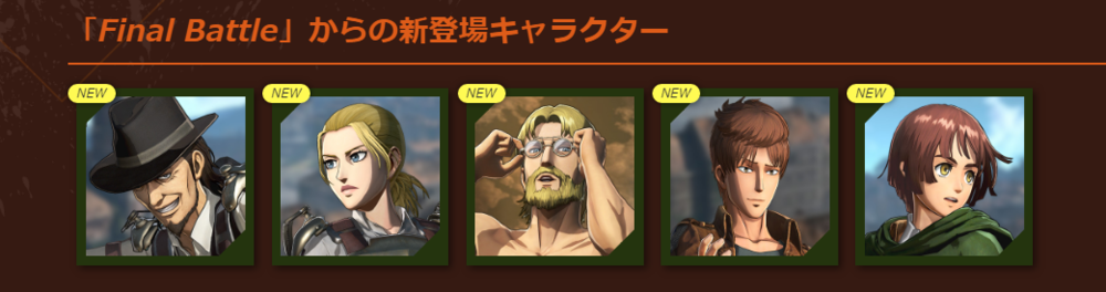 官方也于今日正式公布了凯尼、卡芬、吉克、弗洛克、妮法5名角色将在《进击的巨人2 -Final Battle-》中登场。玩家可以在《进击的巨人2 -Final Battle-》中使用原作中的42名角色。