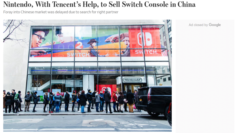 据《华尔街日报》报道,任天堂发言人确认了腾讯科技将代理 Nintendo Switch 游戏机的传言。据悉,腾讯已向中国政府提交了审批请求,一位任天堂的发言人确认了将就游戏机及其衍生设备,以及游戏审批等方面与腾讯科技有限公司合作,将 Nintendo Switch 带入潜力巨大的中国市场。