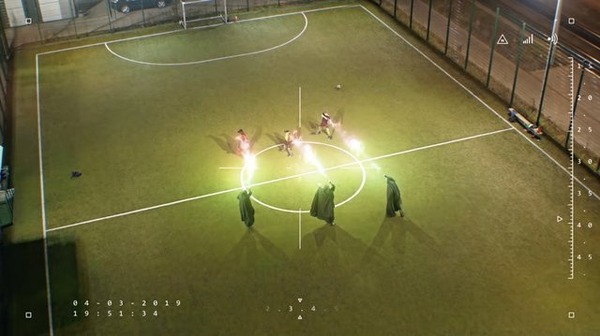 また、映像の序盤では「死喰い人(デスイーター)」らしき者達がサッカーコートに下り立つ姿も。後半では、サッカーをしていた青年達と魔法で戦っているシーンが見られます。ちなみに、「死喰い人」とはゲーム内でも実際に戦うことが可能です。