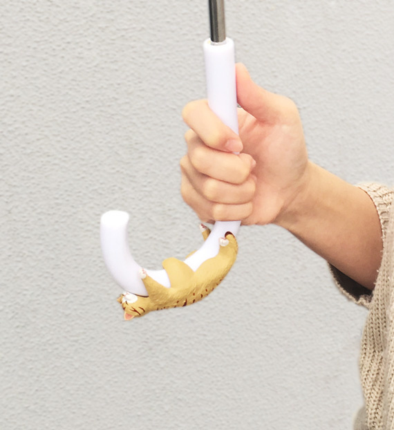 担当原型制作的 K 表示他曾在电视上到猫在沙发顶端睡觉的样子,感觉四肢下垂且脱力的猫非常可爱,那时候他就有把猫的这种姿态做成实物模型的想法。后来 K 觉得雨伞的握把正是“最不安稳的地点”,适合让“猫”在伞把上睡一觉。