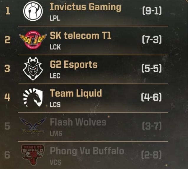 2019年《英雄联盟》季中冠军赛的正赛小组赛阶段在5月14日落下了帷幕,积分榜前四的四只队伍晋级到了后续的半决赛阶段。中国赛区的 Invictus Gaming 战队(下文称“IG”)以创纪录的9胜1负战绩位列小组赛第一,拥有了选择半决赛对手的机会,而他们选择了北美赛区的 Team Liquid 战队(下文称“TL”)作为半决赛的对手。因此韩国赛区的 SK telecom T1 战队(下文称“SKT”)也将在明日对阵欧洲赛区的 G2 Esports 战队(下文称“G2”)。
