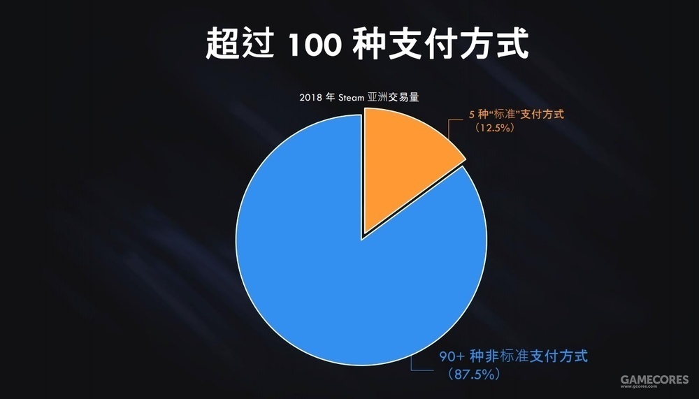 需要指出的是,在 Steam 今年的游戏开发者大会中他们特别提到了去年亚洲87.5%的 Steam 交易使用了非标准的支付方式,其中包括礼物卡及各国家和地区特有的支付方式(如中国的支付宝、微信),而 Steam 为开发者承担这些第三方支付方式的交易费用, Pcgamesn 认为这可能是其在亚洲市场的强劲表现得一个原因之一,因为 Epic 选择将这些第三方交易费用转嫁给消费者,而显然 Steam 对亚洲玩家来说更加友好(尤其是考虑到 Epic 面向中国锁区)。