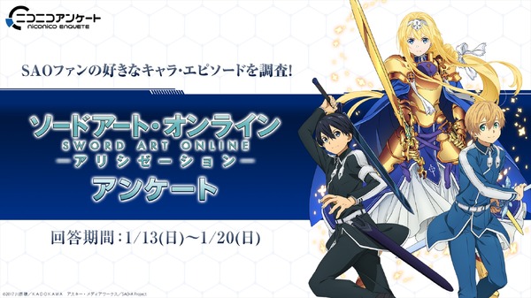 このほか「SAOファンに聞く!好きなキャラ・エピソード」のアンケート結果全容は、「ソードアート・オンニコニコ -ニコニコでコラボしてみた-」特設ページにて公開中。