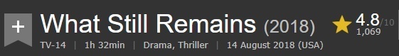 《还留下什么》(What Still Remains)是Josh Mendoza自编自导的电影,剧情设定为大流行性病毒爆发二十五年后,女主角安娜和她的兄弟大卫试图在暴力和野蛮的末世中存活下去的故事,一路上他们遇到了诸多人性的考验。
