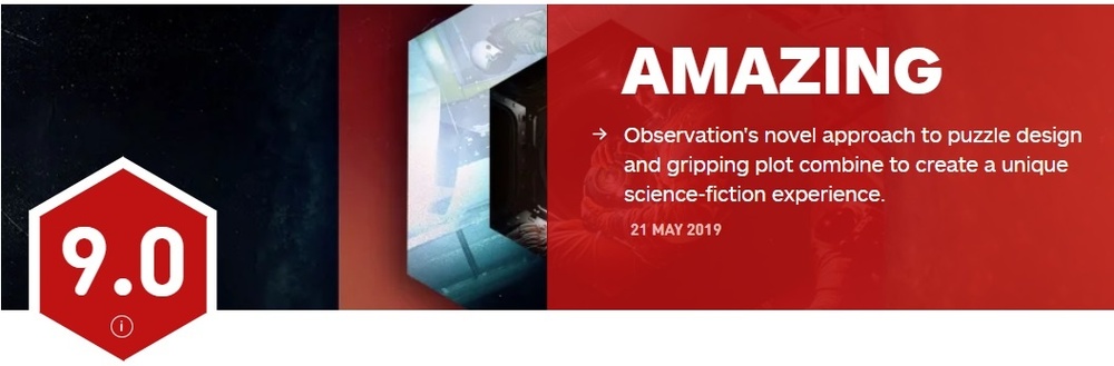 给出90分的 IGN 以及 Digitally Downloaded 都表示,没有多少游戏可以被称之为艺术品,而《OBSERVATION》却正是少数的游戏中的艺术品,他们都很推荐喜欢这一题材的玩家尝试这款游戏,而游戏在 Epic 国区仅为10美元,也是非常值得尝试的。