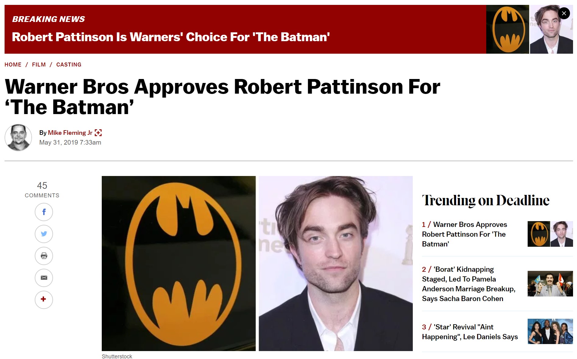 Deadline 还给出了更加确切的一些内容,比如帕丁森也可选择额外签下后两部电影,新三部曲的第一部故事会聚焦在蝙蝠侠身份的确立上,因此才会选择相对年轻的演员,而这个系列也已经与本·阿弗莱克版(《正义联盟》、《蝙蝠侠大战超人》)再无关系。