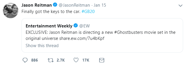 全新的《捉鬼敢死队》由老版经典作品导演伊万·雷特曼之子杰森·雷特曼(Jason Reitman)执导,伊万·雷特曼也将参与本片的制作工作。目前有关本片更多卡司以及编剧阵容暂时还没有确切的消息传出。不过杰森·雷特曼在推特上表示:车钥匙终于归我了。