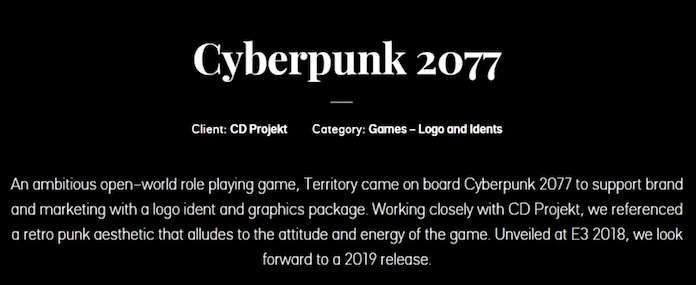近日,CDPR 的合作伙伴,负责游戏的图标等视觉识别(Visual Identity,将游戏中可视事物进行规范统一)的知名创意设计机构 Territory Studio 不小心在自家官网泄露了《赛博朋克 2077》的可能发行时间。