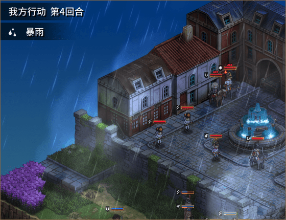 在战场设计方面,《圣女战旗》还引入了天气与可变地形系统。战场环境会因为时间的推移而改变,例如暴雨会熄灭可以用于恢复的营火、影响补给线而且变得泥泞的道路也会改变部队的行动力。正确利用这些变化可以为战斗带来优势,但在极端环境下,稍有不慎就会陷入失败的境地。