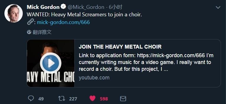 而就在不久前天,戈登发了一篇关于录音征集的推特,在这视频中装模作样的表示自己想要组建一个合唱团。只不过他需要的稍微有点不同,指定了将是一个全部由“重金属尖叫者”(Heavy Metal Screamers)组成的团队。