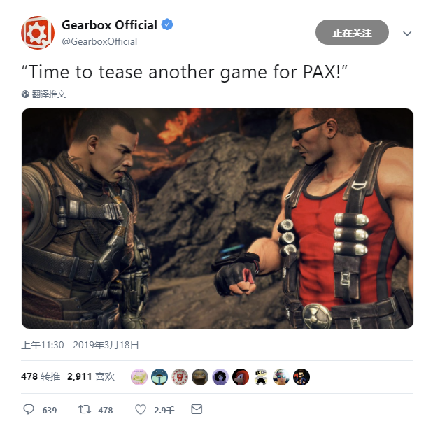本月月初,Gearbox 的推特上发布了如此一张图片,并配文:“是时候预告 PAX 展上的另一款游戏了。”这一宣告暗示了《子弹风暴》和《毁灭公爵》或许将会有新消息。
