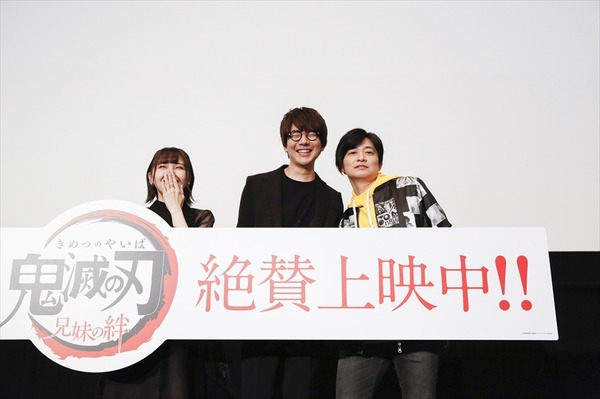 「週刊少年ジャンプ」で連載中の『鬼滅の刃』。TVアニメ放送に先駆け、2019年3月29日には新宿バルト9にて、特別上映版『鬼滅の刃 兄妹の絆』の初日舞台挨拶が実施。イベントでは花江夏樹(竈門炭治郎役)、鬼頭明里(竈門禰豆子役 ※禰はネ編 以下同様)、下野紘(我妻善逸役)が登壇し、演じた感想や本作の見所を明かした。