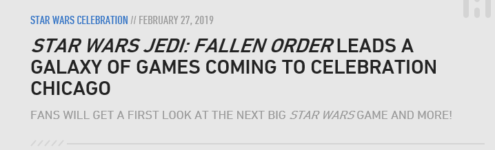 今年4月13日,重生工作室将在芝加哥星球大战庆典上进行新《星战》游戏的揭示庆祝活动。在去年E3的EA发布会上,重生曾口头宣布了这款游戏的存在。