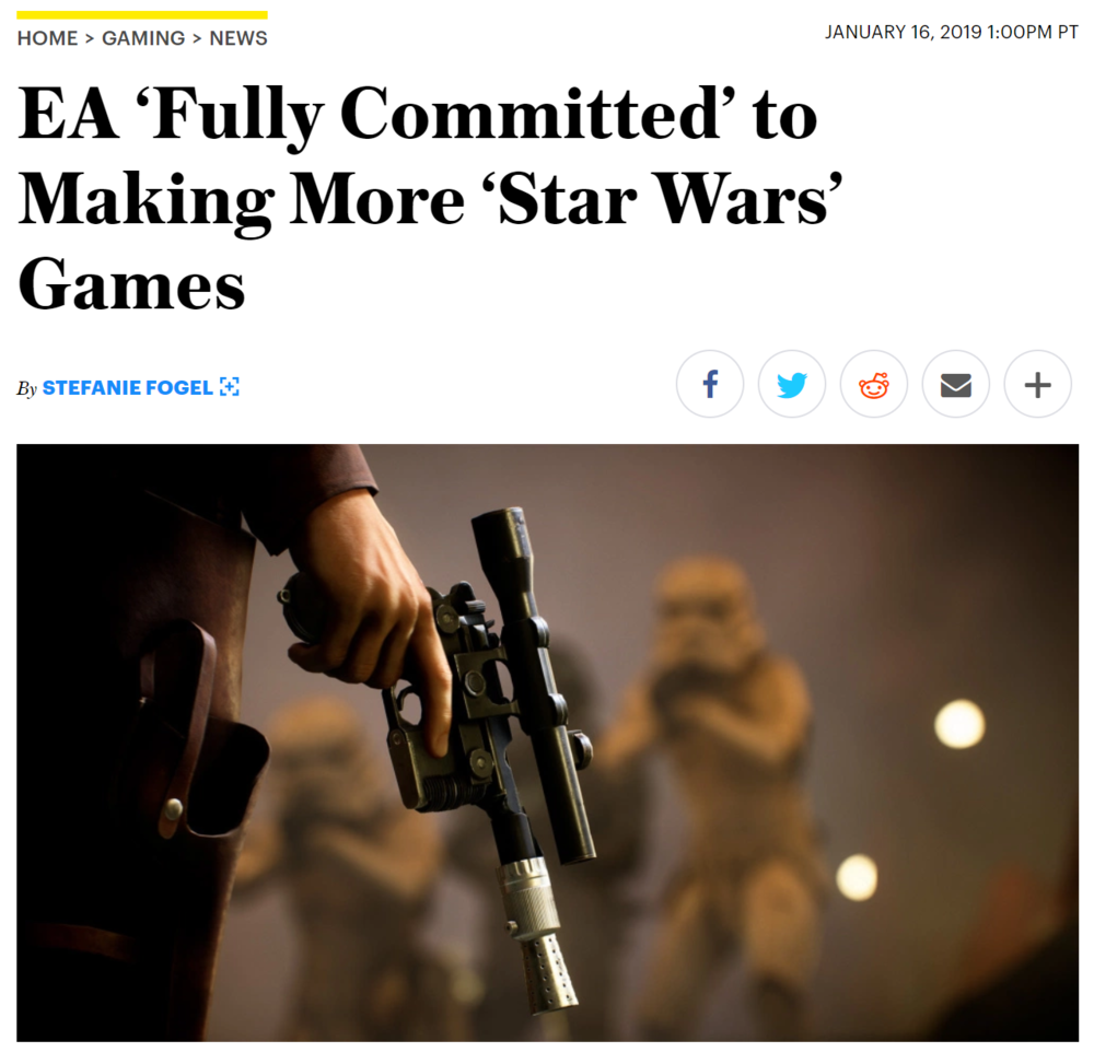 “此前有人猜测我们的'星球大战'项目之一,”EA表示。“作为创作过程的一个自然组成部分,我们团队在温哥华的优质工作将继续,并将演变为未来的'星球大战'内容和游戏。我们完全致力于制作更多“星球大战”游戏,我们对Respawn的“《星球大战绝地:堕落秩序》”感到非常兴奋,我们将在时机成熟时分享更多有关我们新项目的信息。
