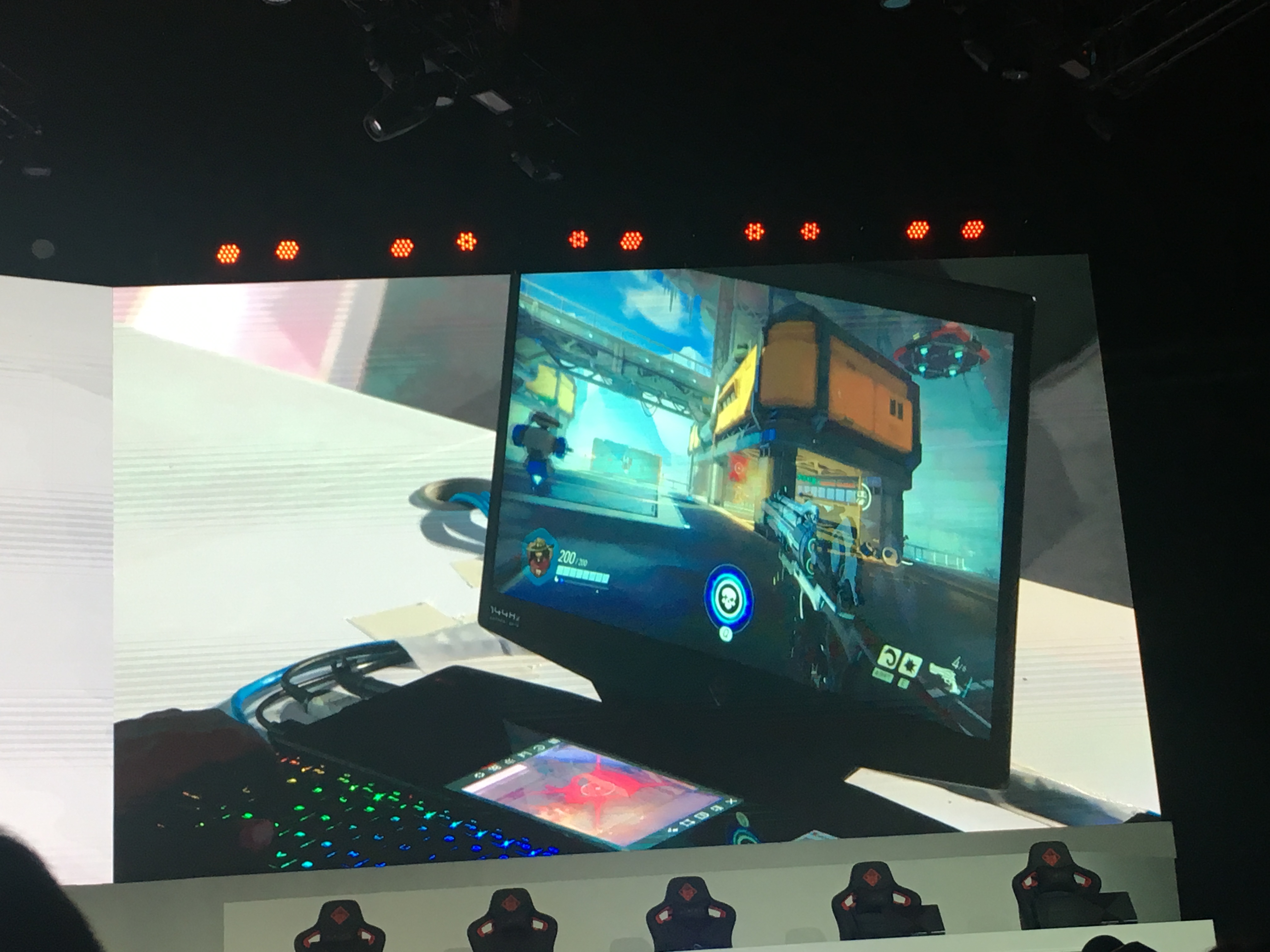 首先公布的是惠普幻影精灵X 双屏游戏本,这款游戏本为了解决玩家在游戏时需要来回切换任务的烦恼,在主屏幕之外,键盘上方还有一块额外的小屏幕。除了简单的多任务处理外,通过这块屏幕的实时映射投屏,玩家还可以把小地图、甚至是画面的准心部分放大显示到其上。另外幻影精灵X的厚度仅有20毫米,还采用了液态金属导热层技术,使它的处理器可以长时间稳定运行于高频率下。