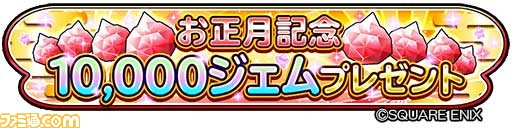 お正月記念として、下記受け取り期間中に『星のドラゴンクエスト』へログインするだけで全ての冒険者に10,000ジェムをプレゼントいたします。