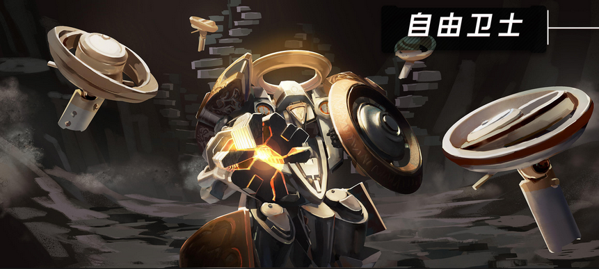- 自由卫士最初起源于一个由崇尚绝对自由的群体组成的社区。随着势力的日益壮大,对自由意志的崇尚逐渐转变为了对人类大脑的信仰,因此他们拒绝将意识电子化,这一逆势而为的行为使得其成为了人口最少的势力。在大战后才逐渐崛起的公司“野火动力”为自由卫士提供机甲,他们拥有最为顶尖的人工智能和无人机技术,受益于此,自由卫士拥有各式各样的无人机,而少量强大的机甲则是部队的核心。