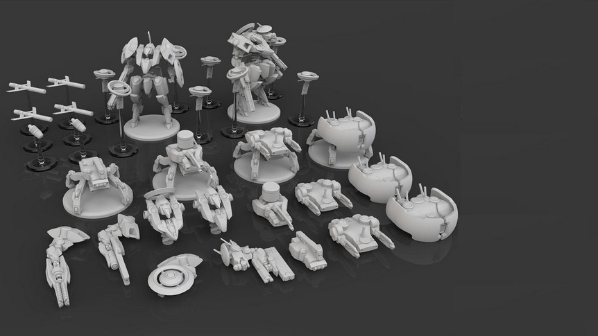 - 联合网络核心包:“红点科技”生产的精锐机甲拥有最为优秀的火控系统和机动能力,当这些机甲被精英驾驶员操纵时更为致命。本核心包包括22个部件,2个无人机,2个无人机装备,八个抛射物。